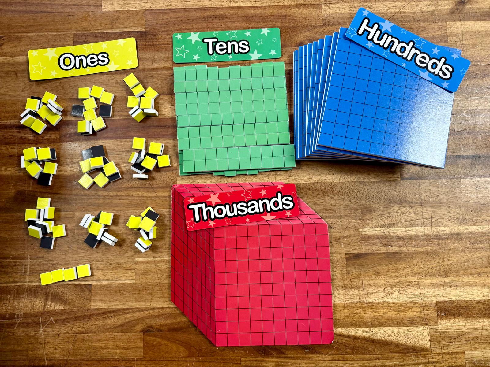 - Place value labels: Ones, Tens, Hundreds, Thousands