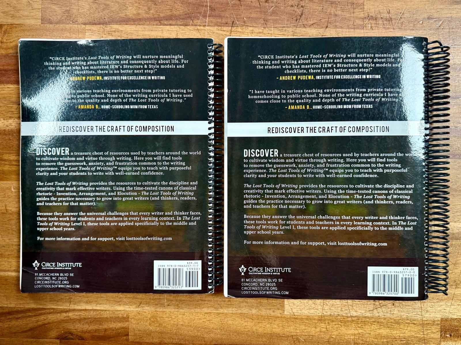 This Level One set from The Lost Tools of Writing provides a complete introduction to classical rhetoric and composition for middle and high school students. Using time-tested tools—Invention, Arrangement, and Elocution—this program helps students learn how to think clearly, craft strong arguments, and write with confidence. Both the Student Workbook and Teacher Guide are spiral-bound, making them easy to use in daily homeschool lessons or co-op classes. This gently used set from First Homeschool in Springdale, AR, offers a cost-effective way to bring a highly respected writing curriculum into your home.