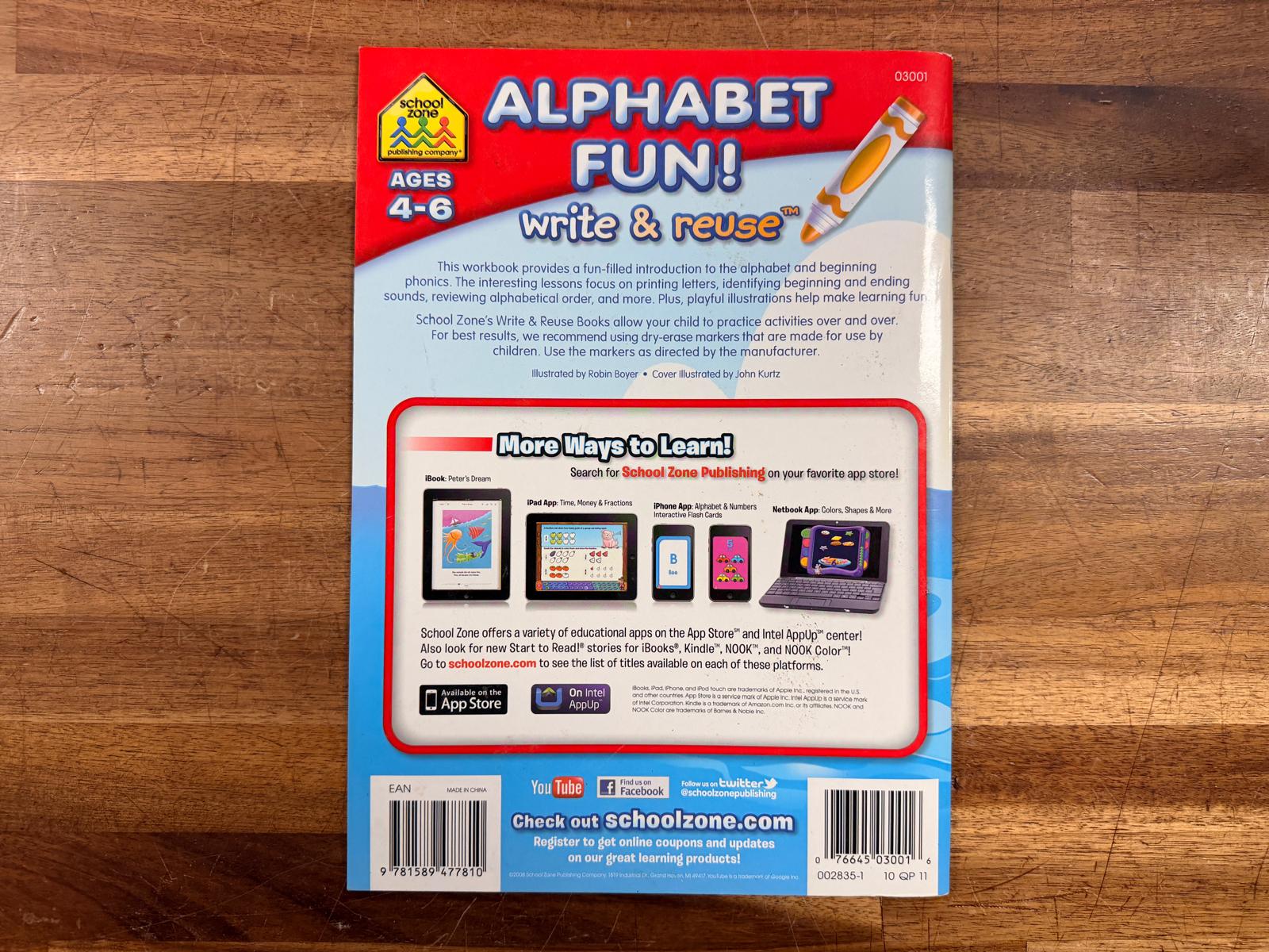 School Zone Alphabet Fun! Write & Reuse (Ages 4–6): Hands-On ABC Practice for Early Learners